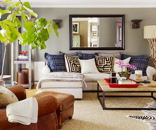 1. Change out those toss pillows. You’d be surprised at how much impact the right toss pillows can have in your interior space. Pillows provide an infusion of color and movement with their textures & patterns and even if you’re don’t currently have the sofa/chair of your dreams, the right pillows can become the star of your show. To pull this look off with success, don’t be afraid to mix patterns and colors for an eclectic and custom look. Keep in mind that pattern mixing is not as difficult as it appears, it’s just all about scale.  To balance your patterns, the rule of thumb is to use one large scale pattern, one medium scale pattern, and one small pattern so no one print fights for attention. Feel free to repeat the patterns in your space and/or use solid pillows to break up the mix. Your house will be looking like a showroom in no time!